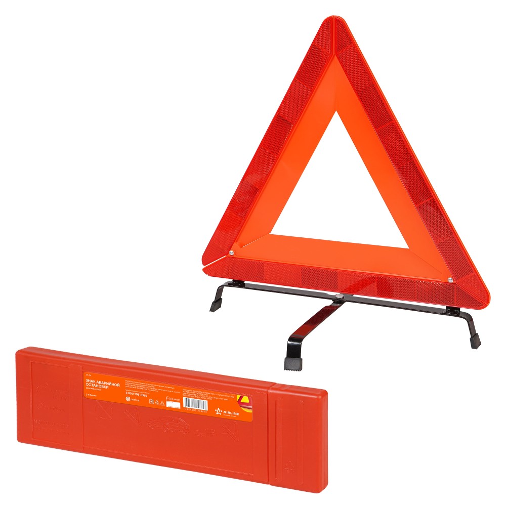 Знак аварийной остановки, представляет собой равносторонний треугольник. Внешняя сторона этого треугольника обклеивается полосой, изготовленной из светоотражающего материала. Это необходимо для того, чтобы он был заметен другим водителям с дальнего расстояния. Внутренняя сделана из яркого пластика. Данным видом знаков чаще всего комплектуют премиальные модели иномарок. Соответствует ТР ТС 018/2011. Применяется в случаях предусмотренных в ПДД РФ, п.7 "Применение аварийной сигнализации и знака аварийной остановки".
