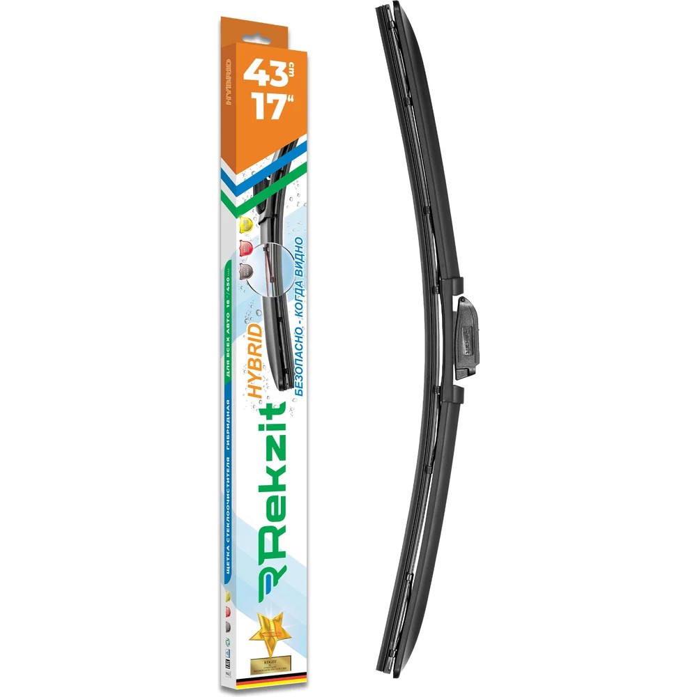 Это щетки самой современной конструкции. На корпусе щетки есть специальные рычаги, это позволяет гибридному дворнику максимально плотно прилегать к поверхности лобового стекла. Гибридные дворники REKZIT очень эффективны, это обеспечивается специальной фиксированной вставкой из резины, которая дополнительно покрыта слоем графитового покрытия.****В конструкции гибридных щеток REKZIT объединены преимущества каркасных решений и системы коромысел и шарниров. Также имеется спойлер. И если каркасные и бескаркасные дворники нельзя считать универсальными, то гибридные щетки дворников сейчас наиболее универсальны за счет каркаса, который регулирует оптимальную силу прижима щетки к стеклу.
