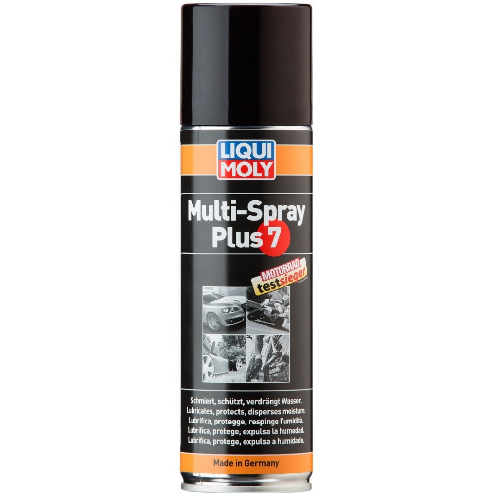 Multi-Spray Plus 7 - многофункциональный комплекс присадок в базовом масле с растворителями. В качестве газа-вытеснителя используется СО?, что обеспечивает остронаправленную струю препарата без использования трубочки. Состав эффективно вытесняет воду и продукты коррозии, смазывает, устраняет скрипы, очищает и придаёт ухоженный внешний вид пластмассовым и резиновым деталям, защищает от коррозии. Рекомендуется в качестве универсального средства при обслуживании автомобилей, мотоциклов, силовой и промышленной техники. Укрывистость: чистый металлический лист 150-200 м?/л.****- Вытеснение влаги**- Удаление грязи и ржавчины**- Великолепная способность к растеканию**- Антикоррозионное действие**- Смазывает и снижает трение**- Без содержания силиконов**- Нейтрален по отношению к пластику, лакам, металлам, дереву**- Предотвращает скрипение**- Возможность универсального применения****Многофункциональная проникающая смазка заменяет при обслуживании 7 специализированных препаратов.