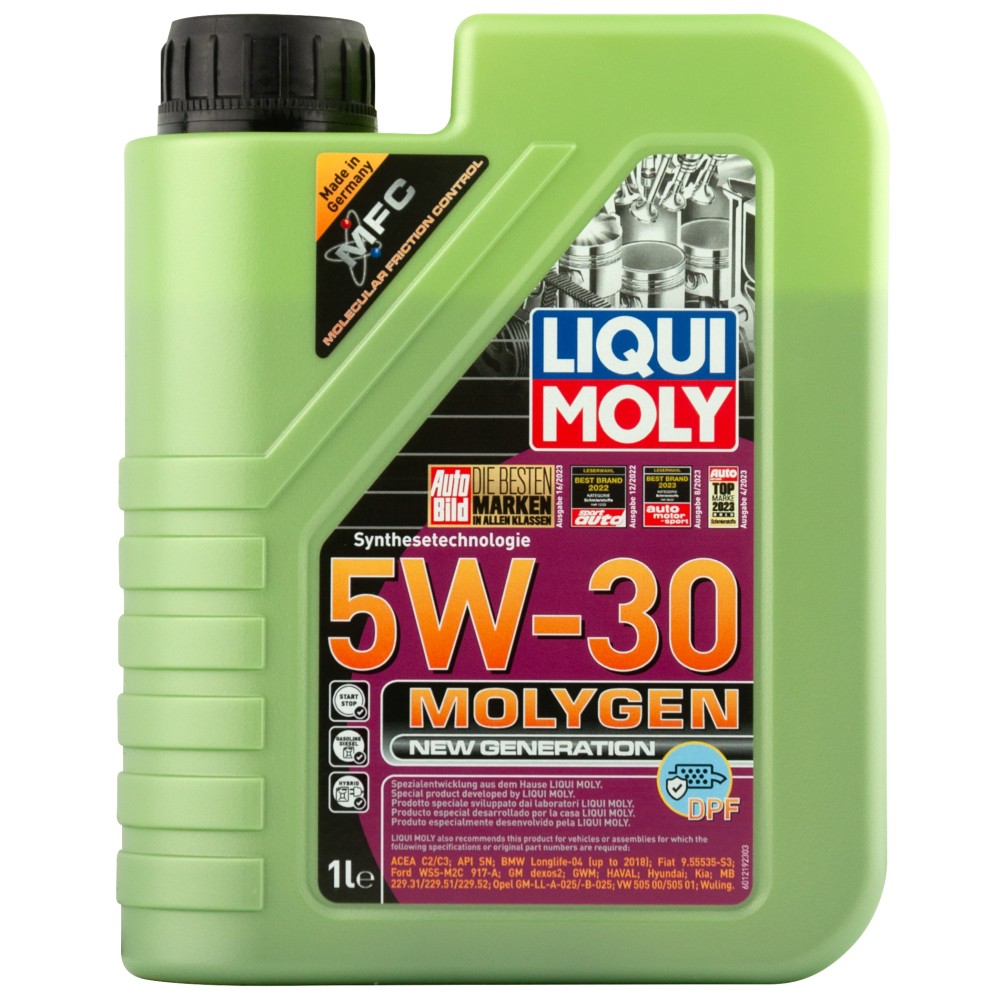 Комбинация самых современных базовых масел и новейшего уникального пакета присадок Molygen, созданного на основе гибридной технологии MFC, обеспечивает моторному маслу непревзойденные защитные свойства. Технология MFC (Molecular Friction Control) работает посредством легирования поверхностного слоя деталей двигателя ионами молибдена и вольфрама. В результате легированные поверхности обладают очень высоким запасом прочности, который сохраняется на долгий срок.**- легкий ход двигателя**- наивысшая защита от износа**- обеспечивает длительный срок службы двигателю**- снижает расход топлива**- быстрая подача масла при низких температурах**- устойчиво к старению**- оптимальное давление масла при всех рабочих режимах**- особенно подходит для автомобилей с сажевым фильтром**- испытано с турбонаддувом и катализаторами"**Моторное масло Molygen NG 5W-30 DPF благодаря новейшей формуле MFC позволяет существенно увеличить ресурс двигателя и сажевого фильтра. Технология снижения трения позволяет снизить расход топлива.